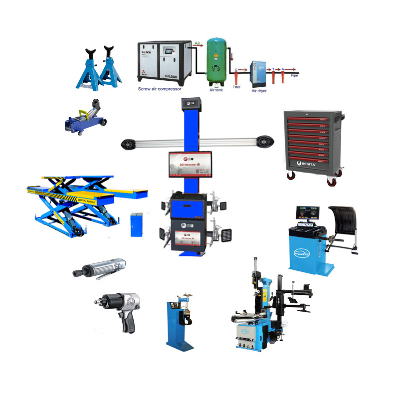 Comparing other solutions, this high level solution is more expensive but we make sure all items are in top quality. The wheel alignment is from same manufacturer of Hof*fman. It not only supports redesigned cars ,but also supply special functions inspection for Germany cars.The solution adopts screw air compressor set, working more efficiently and silently than piston type. High level equipments not only improves car owners' appearance on your workshop, but also bring you more business.You can add or deduct items according to actual condition.